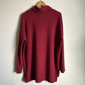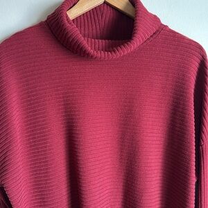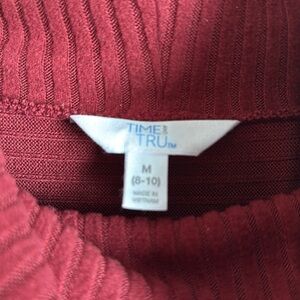 Turtleneck Sweater Ribbed Medium Womens Maroon Burgundy Stretch Time and Tru