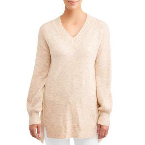 Time and Tru V Neck Tunic Sweater in Oatmeal Heather