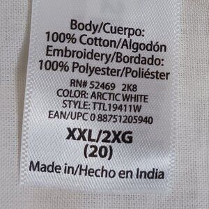 Brand new with tag. Please scroll picture for more details. Time and Tru White Cotton Women's Top/ Blouse size 20 (XXL). Pet and smoke free home.