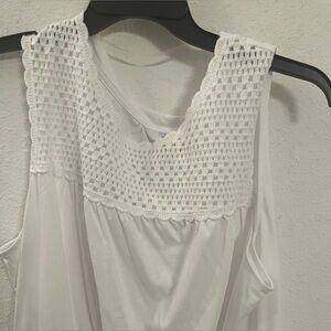 time and tru top, crochet lace blouse, sleeveless tank top, white summer top, plus size blouse, casual tank, flowy sleeveless shirt, layering top