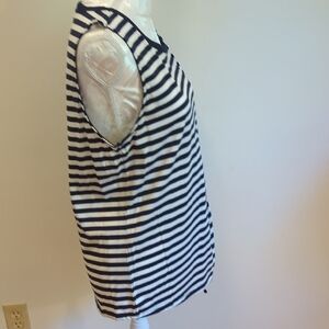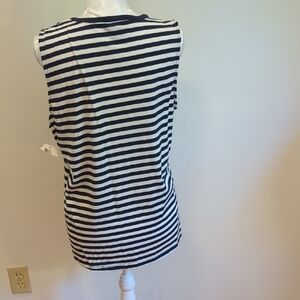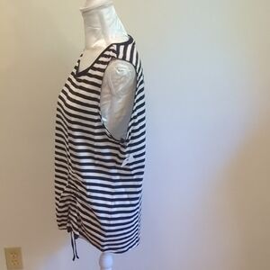 Time and Tru White and Blue Ruched Tie Front Tank Top