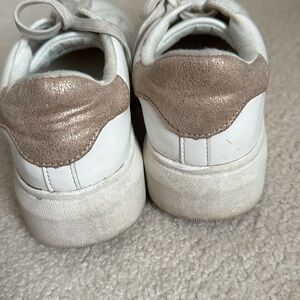Stylish women's sneakers with a sleek white look. Tan details add a touch of contrast. Perfect for casual outings.