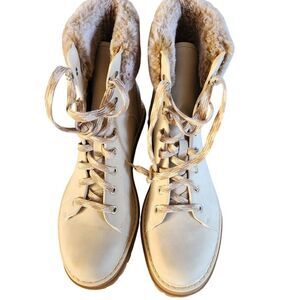 Time and Tru Winter Hiker Boots Women US8.5 Bone Faux Fur High-Ankle WMTT42FM037