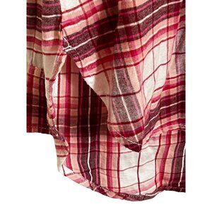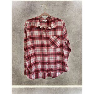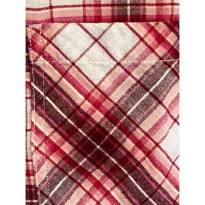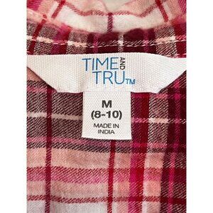 Time and Tru Women Flannel Button Up Shirt Pink Red Plaid 100% Cotton Sz M NWT