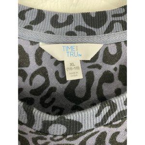 Time and Tru Women Sweat Shirt Size xl 16-18 Purple Cheetah Long Sleeve Cropped
