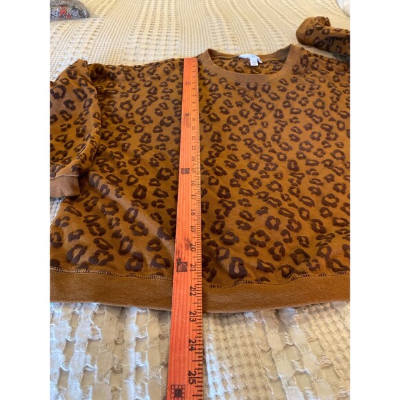 Time and Tru Women Sweatshirt Cheetah Brown Size Large Top Raised Animal Print