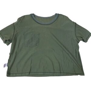 Time and Tru Women Top 100% Pima Cotton Scoop Neck Chest Pocket Green Size XL