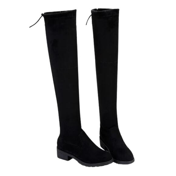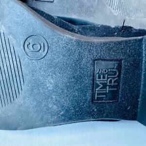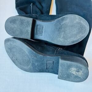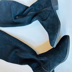 Time and Tru knee-high boots, black faux suede boots, women's size 10 boots, stylish knee-high footwear, casual black boots, women's knee-high boots, faux suede knee-high boots, Time and Tru black boots, knee-high winter boots, black casual boots
