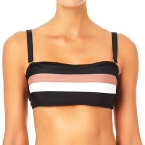 Hit the beach sporting this color blocked bandeau featuring adjustable removable straps, removable cups, and boning at side for additional support.