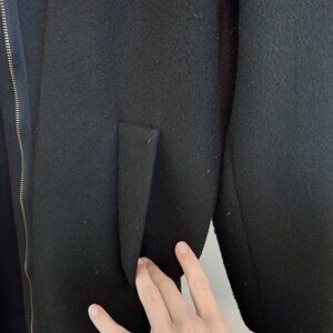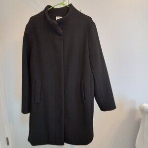 This knee-length black coat is a closet staple! It zips up to the collar bone and features a mock neck to keep you warm.