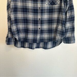 Classic and comfy, this Time and Tru blue plaid button-up shirt is a wardrobe staple. Features a traditional collar, button front, and a relaxed fit. Easy to layer or wear on its own. Size XL and in great used condition.