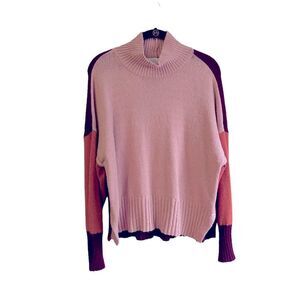 Time and Tru Women's Color Blocked Pink Mock Neck Sweater