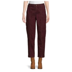 Time and Tru Women's Corduroy Straight Utility Pants, Inseam 27" Rustic Plum