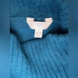✨Time and Tru Women's Cowl Neck Tunic Sweater LG 12/14 Teal knit