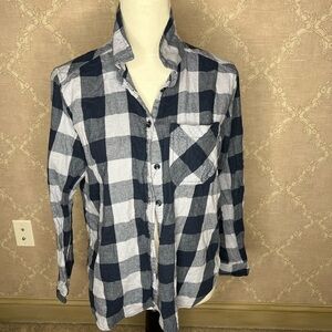 Time and Tru Women's Flannel Shirt Top Size Medium Blue Check Cotton
