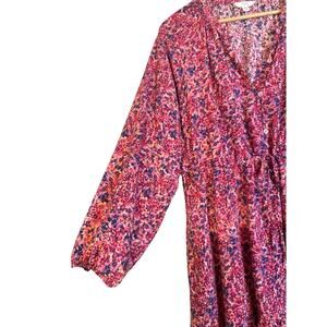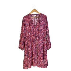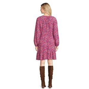 Time and Tru Women's Floral Drawstring Mini Dress Boho Pullover Size XL Pink NWT