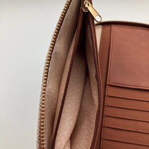 Excellent, like new! Crafted with a blend of leather and recycled fibers, the Time and Tru Freda wallet is an embodiment of both style and sustainability. This zip-around wallet comes in a versatile beige brown tone that effortlessly complements any ensemble or occasion. Designed to keep your essentials organized, it features a credit card compartment to safely store your finance essentials. Its spacious interior and durable exterior make it a practical choice for the woman on the go. With Time and Tru, you're investing in a wallet that's as functional as it is fashionable.