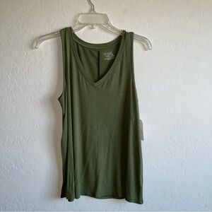 Time and Tru Women's High Low Sleeveless Jersey Tank Top, Size S (4-6) Green