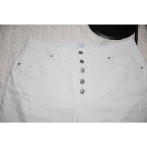 Features: Stretch denim for a comfortable fit; cropped length; cutoff hem; creased front; belt loops