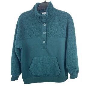 Time and Tru Womens Large Green French Terry Faux Sherpa Pullover Top Sweatshirt