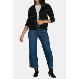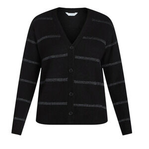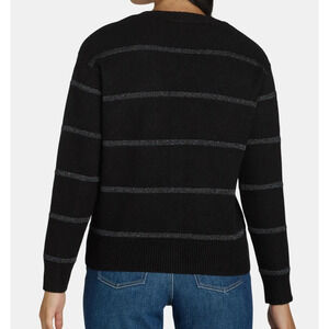 Time and Tru Womens Metallic Striped Cardigan Sweater Black Soot Stripe Size XL