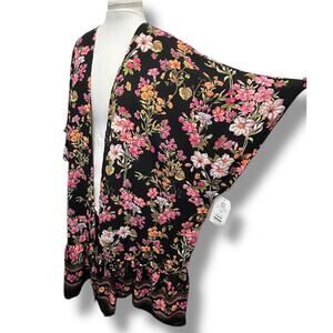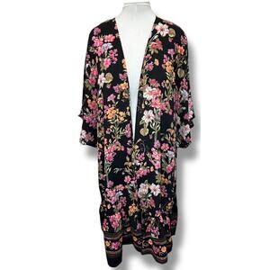 Time and Tru Women’s Oversize Longline Open Front Floral Print Kimono