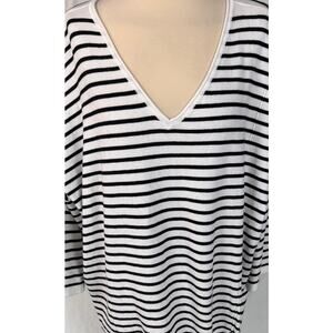 Time and Tru Womens Plus Size XXXL 22 White Black Stripe Tie Waist