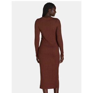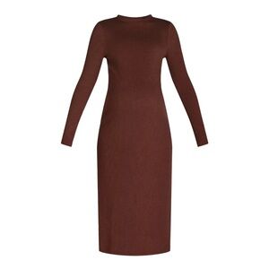 This elegant brown dress features a sleek design with long sleeves, perfect for any occasion. The rich brown color adds a touch of sophistication to your wardrobe.