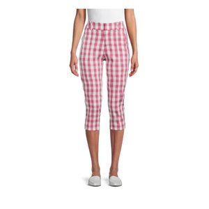 Time and Tru Womens Rosiest Rouge Zip Button Clasp Cropped Capri Pants, Size 16