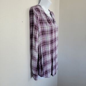 Time and Tru Women's Small Purple Plaid Long Sleeve Shirt V-neck Roll Tab Soft