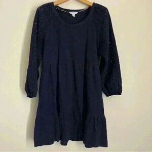 Time and Tru Women's Small Tiered Navy Dress with Eyelet Sleeves