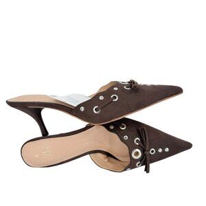 Time and Tru Women's Studded Kitten Heel Brown Mules Shoes Size 6