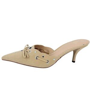 Time and Tru Women's Studded Kitten Heel Tan Mules Shoes Size 10