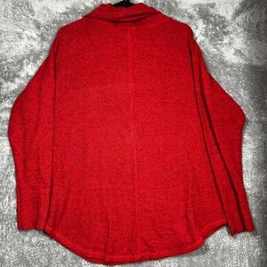 Cozy and vibrant red sweater from Time and Tru in size XL (16–18). Features a soft knit with a stylish cowl neck, long sleeves, and a relaxed fit with a curved hem. Made from recycled materials for a sustainable touch. Perfect for layering and keeping warm during cooler seasons.
