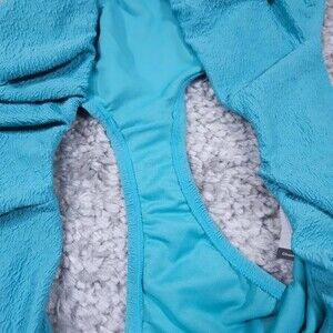 Women's Time and Tru high waist ruffle textured swim bottom in blue-green teal color. New with tags but no hygenic liner. Women's plus size 3X, or 24W-26W.
