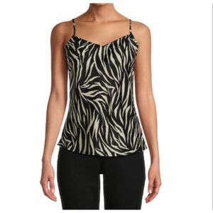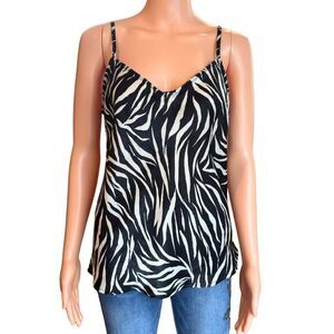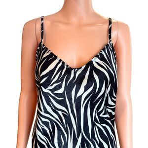 Time and Tru Women’s Zebra Print Satin Camisole Tank Top Medium Black