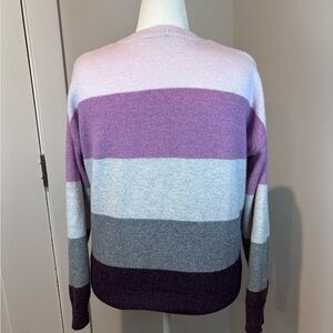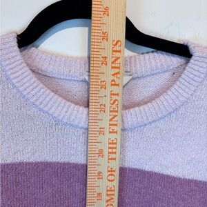 Cozy and versatile Time and Tru pullover sweater in a beautiful purple and gray color block stripe pattern. Perfect for casual wear, layering in cooler weather, or pairing with jeans and boots for a polished look.