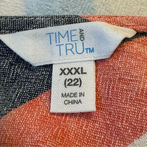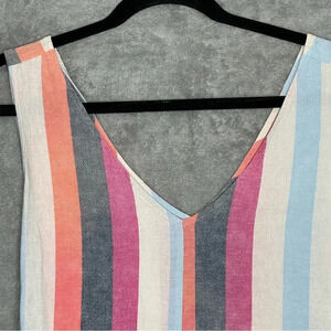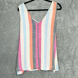 Time and Tru XXXL 22 Shirt Top Pink White Striped Sleeveless V Neck Linen Blend
