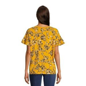 Time and Tru Yellow Floral Knit Flutter Sleeve Top XXXL