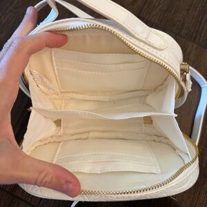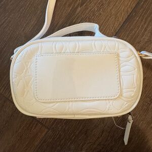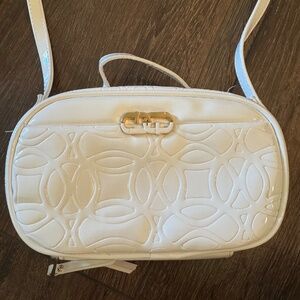 Time and Tru bag Top Handle Cellie Embossed White Vinyl Gold Accents Satchel