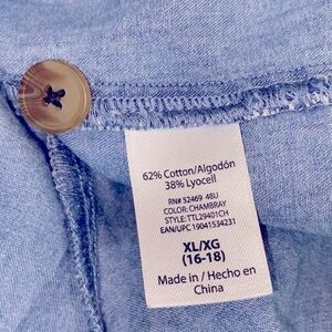 Time and Tru chambray top size XLarge Tie front; button down 5 Star rated Ambassador II Seller! โค๏ธ Over 7,000 sales on Poshmark ๐ŸŽ‰๐ŸŽ‰ All items in Excellent pre-owned condition unless noted on listing Pet free, smoke free; organic home Same day/next day shipping! ๐Ÿšš๐Ÿ“ฆ We carry a variety of sizes from xxsmall to plus sizes. Brands range from Vintage, Tory Burch, Johnny Was, Revolve brands, Reformation, Free People, Frye, Anthropologie, Eileen Fisher etc to high end brands such as Escada, DVF etc Follow me on IG @Styledhanger ๐Ÿ“ท xo ๐Ÿ˜˜โค๏ธโค๏ธ