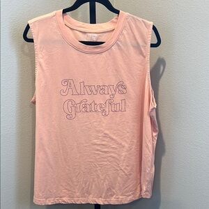 Embrace a relaxed vibe with the Time and Tru Pink Boxy Muscle Tee, featuring a soft pink hue and a classic crew neckline. This top is crafted from lightweight material, offering comfort and style with its retro-inspired 'Always Grateful' print. Ideal for casual outings, this muscle tee combines a boxy fit with a touch of vintage charm.
