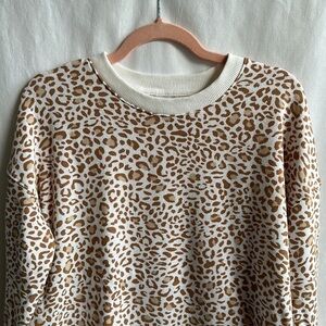 Time and Tru crew neck leopard print high-low sweatshirt, size M. Good preowned condition. Tan and cream. Soft. Cotton/polyester blend.