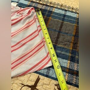 features a hood, a V-neckline and a striped pattern in white, pink, and red tones. Women’s Large. Good Condition. Please see measurements to ensure this will be the correct fit for you. Thanks for looking!