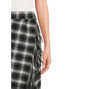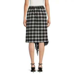 Time and Tru Women's Fringed Faux Wrap Skirt is a statement piece for your cold weather wardrobe. The classic plaid pattern is offset by a laser-cut self fringe, faux wrap styling and turnback hem. Short booties and tall boots pair perfectly with the midi length and straight silhouette, ideal for cool-weather wear. Exclusively at Walmart.