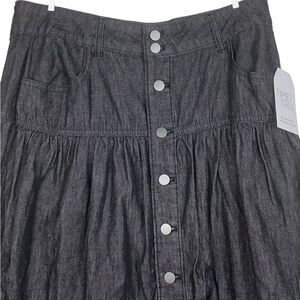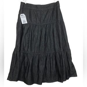 Time and Tru Wms Sz 10 Washed Black Tencel Tiered Relaxed Fit Denim Midi Skirt