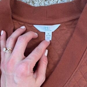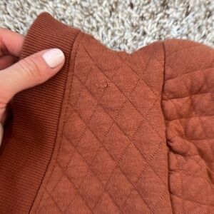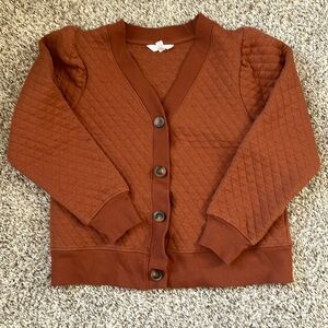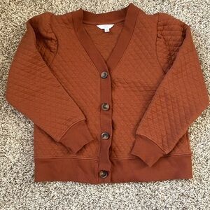 Time and True Coordinating Quilted Puff Sleeve Cardigan Sweater Orange Medium