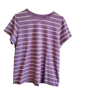 Time and True Preppy Lavender and White Crew Neck Tee Large