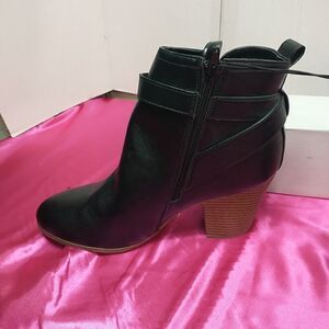 Time and True Womans SZ 11 W Ankle Boots Memory Foam Black Side Zip .