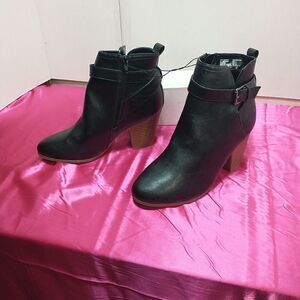 Time and True Womans SZ 11 W Ankle Boots Memory Foam Black Side Zip . NWT